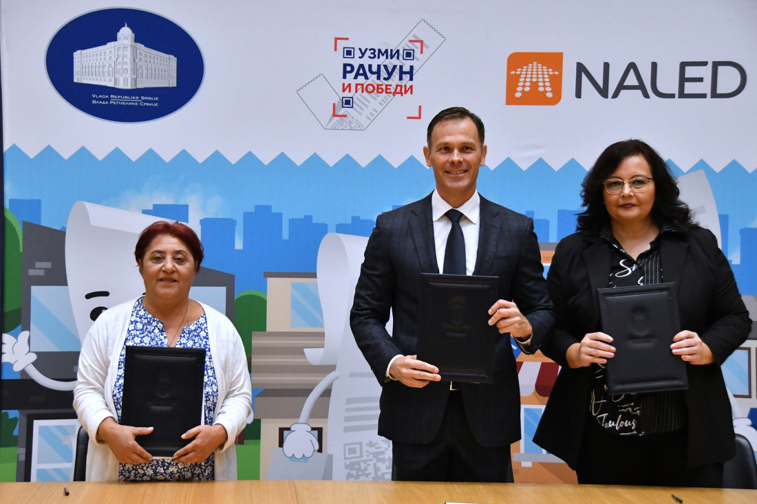 Prvi potpredsednik vlade i ministar finansija Siniša Mali danas je uručio nagrade dobitnicima igre „Uzmi račun i pobedi“. Ključeve trosobnog stana u Beogradu dobila je Vera Jankov, dok su Dijani Ljubičić Zečević i Slobodanu Đokoviću uručeni ključevi od električnih i…