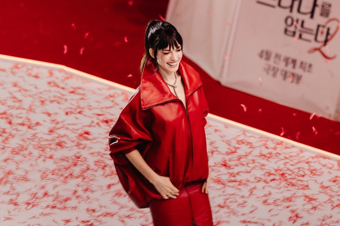 Na premijeri filma „Đavo nosi Pradu 2“ koja je održana u Seulu 8. aprila, En Hatavej je pokazala kako holivudska glam-estetika može perfektno koegzistirati sa savremenom modom visokog ranga. Njeno pojavljivanje u upečatljivom crvenom kožnom kompletu iz Balenciaga kolekcije za jesen/zimu 2026. izazvalo je brojne komentare među modnim kritičarima i obožavaocima širom sveta.